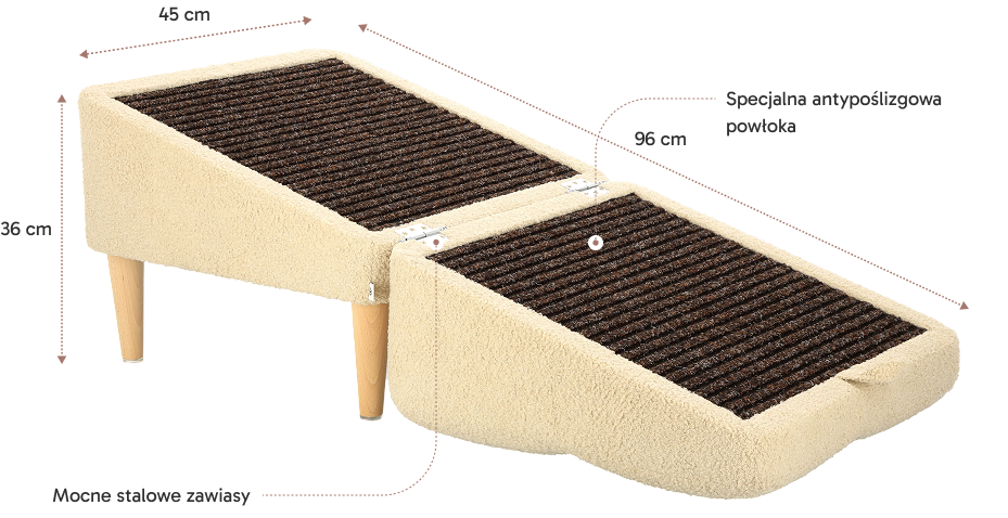 Nie. Powierzchnia rampy jest antypoślizgowa, dzięki czemu pies ma pewne podparcie nawet przy dynamicznym wejściu.