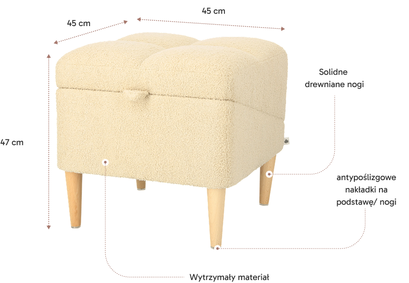 - Wymiary: 45 × 45 × 47 cm;